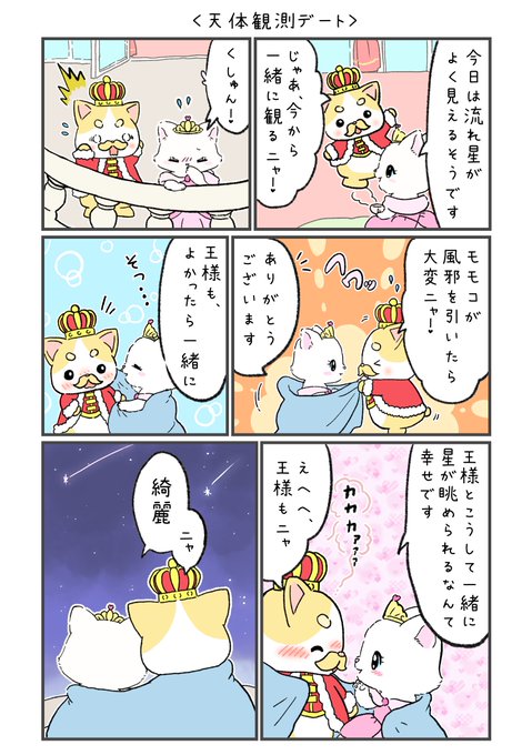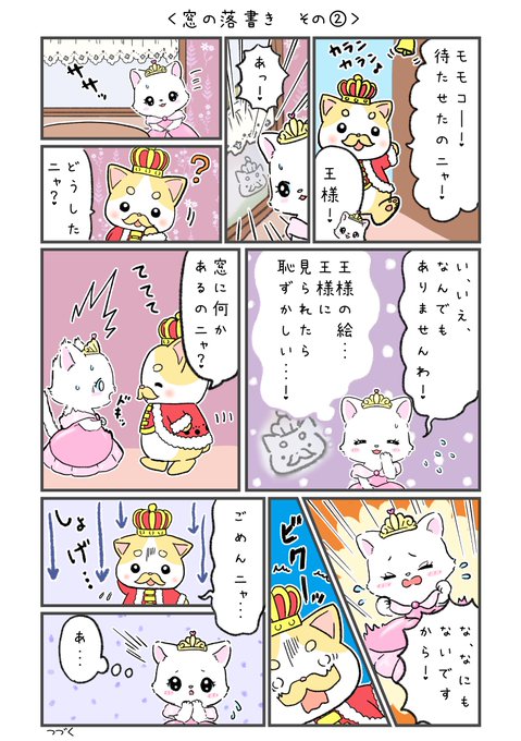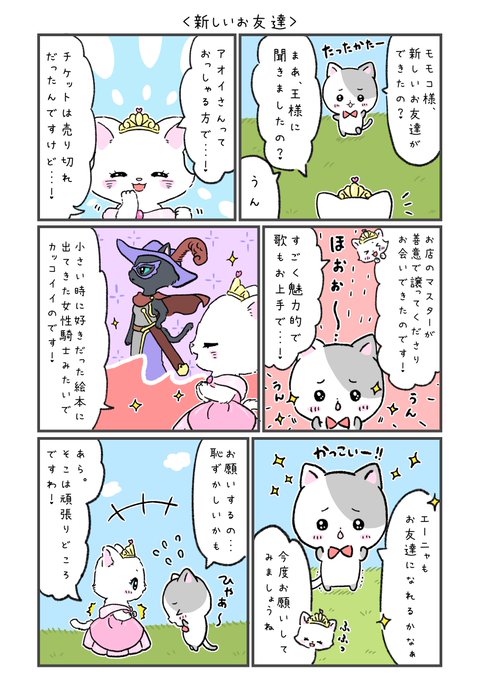 新キャラアオイちゃん3話目! お姫様モモコとの新たな出会いです🐈 そしてそして、今日はホワイトデーですね! バレンタインのお返しで素敵な女性にお菓子をあげましたか? 王様は、クッキーやマカロン、チーズ菓子など、いろんな物をあげたニャー🍪 #漫画が読めるハッシュタグ