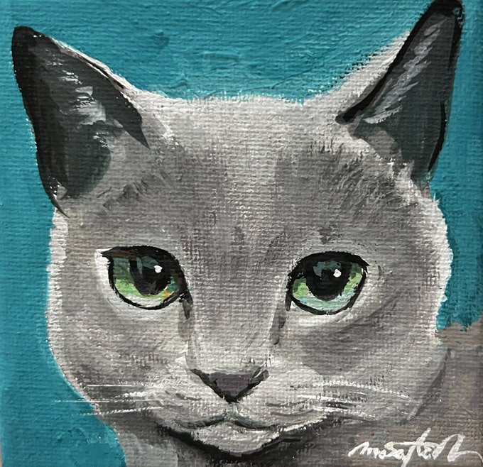 1 6 家に2ヶ月だけいた迷い猫。無事元の飼い主にのところに帰りました。10×10センチのミニキャンバスにアクリルガッシュで描きました。#アクリル画 #ペットの肖像画 23/06/28 20:49