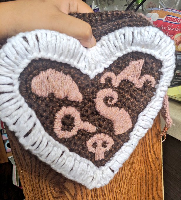 I've been working on my own crochet version of Kiara's bag! It's not very close to the reference but I wanted an opportunity to level up my crochet skills. I really love how the "icing" turned out. The yarn I used was scrap I had and it was perfect for the look haha #ArtsOfAshes
