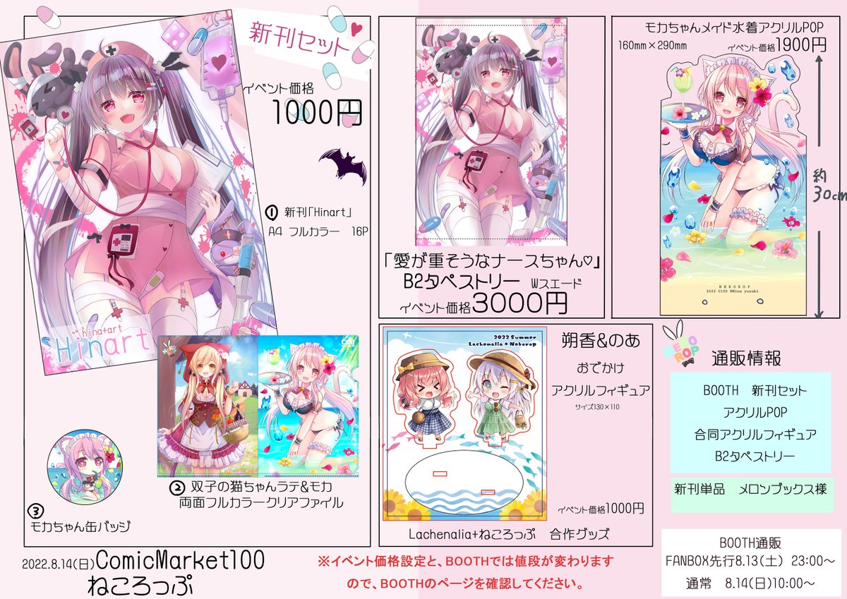 【C100】ねころっぷ 通販詳細 BOOTHで23時から23時半頃にFANBOX先行、14日10時から通常通販の受付を致します。お品書きには記載してませんが、購入の方にマスクケースもプレゼント。 新刊セット等【BOOTH】nekorop.booth.pm 新刊単品【メロンブックス】melonbooks.co.jp/circle/index.p… #C100 #お品書き