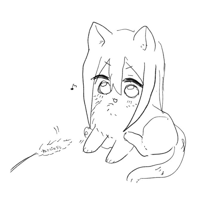 右手が使えないなら左手で描くしかないな!?!?🤔← という事で描いた猫じゃらしで戯れるかにゃでrkgk