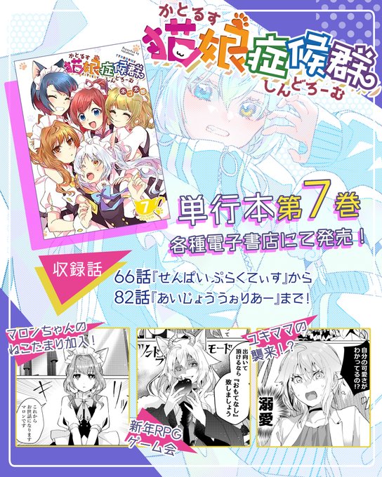 🐱猫娘症候群 #かとるす 🐱 待望の第7巻配信開始です! 一迅社版で追ってくれてた方はここからが続き🙌 マロンちゃんの加入からドキドキのクリスマス、新年RPG合戦に子猫の子育て回とユキママの襲来まで盛りだくさんの巻になってます! ご購入はこちらから!👇 amzn.asia/d/dfaue1u