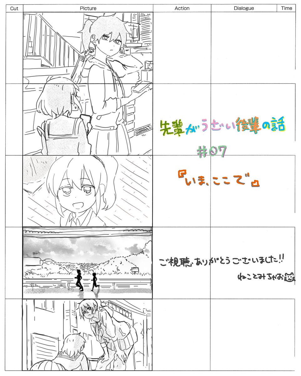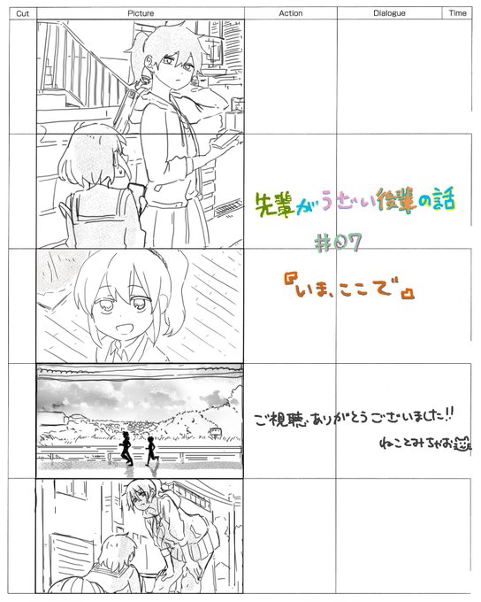先輩がうざい後輩の話#07のコンテ演出担当させていただきました‼︎監督の伊藤さんはじめ、スタッフの皆様には大変お世話になりました🙇♀️(コンテの修正とかCTめちゃくちゃ勉強になりました)そして総作監はななななんと中川さん‼︎めちゃくちゃかわいい修正をたっくさんいれて頂きました…!(続)
