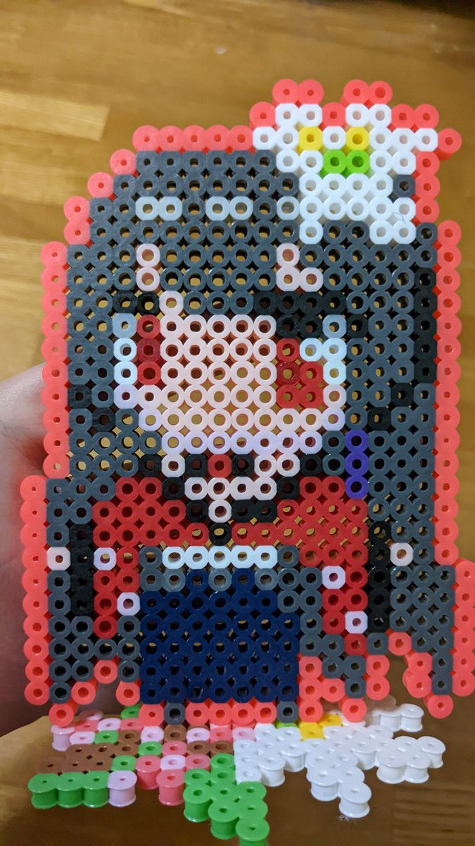 ぴろぱるさんお誕生日おめでとうございます!🎂🎊🎉 周りの友達とかがお祝い絵とか描いててわしもお祝いになにか作りたいな〜って思ってアイロンビーズで前作ったのとは違う姿のミニキャラ作ったんだけど全然似てねぇ〜(´;ω;`) そして何故かショタ感が凄い! #ぴろぱる生誕祭2021 #ぴろぱる展
