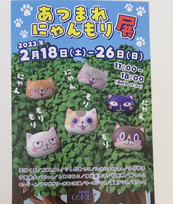 5 10 2月18日~26日 #アトリエコメット さんにて #あつまれにゃんもり展 に参加します 浅草近くのギャラリーです 観光がてらお出かけ下さいませ😺 今回は #羊毛フェルト 作品(非売品)も展示します いつもの粘土作品や手描き小物も少しですが有ります どうぞよろしく❤️ #猫屋アリス 23/02/16 20:43
