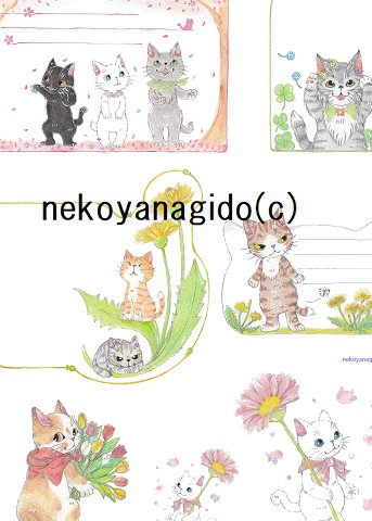 こちらも仕上がってきました。春のイメージのシール🌸紙質が違う2種類になります🐱😊 #猫好きさんと繋がりたい #猫 #猫イラスト #猫グッズ #色鉛筆画 #オリジナルシール