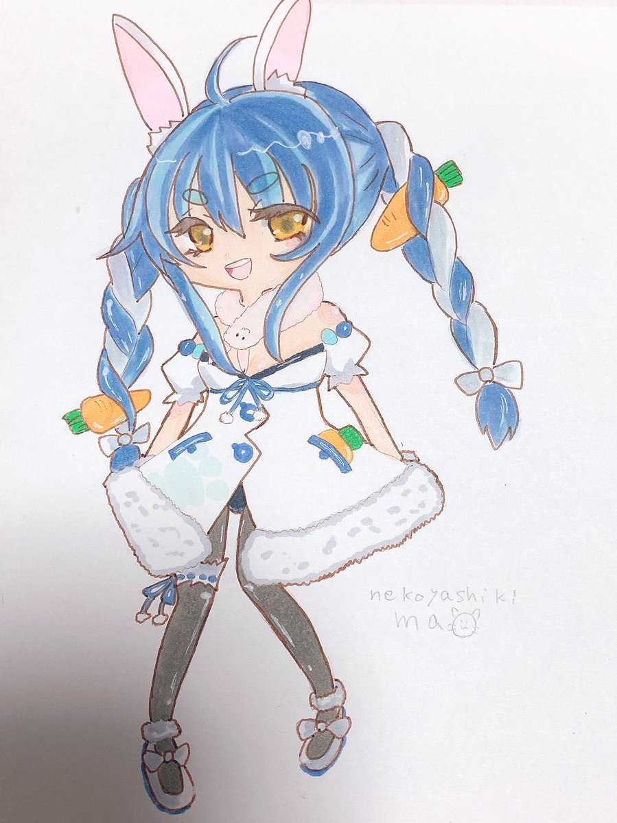 とりあえずアナログてペコラちゃん描いて塗ってみた!!影入ってるのはごめんなさい😭 デジタルは時間かかるからそのうち🥺 ペコラちゃん可愛いし面白くて好き🥰 #ぺこらーと #ぺこーら #兎田ぺこら #コピック #アナログイラスト #ぺこら