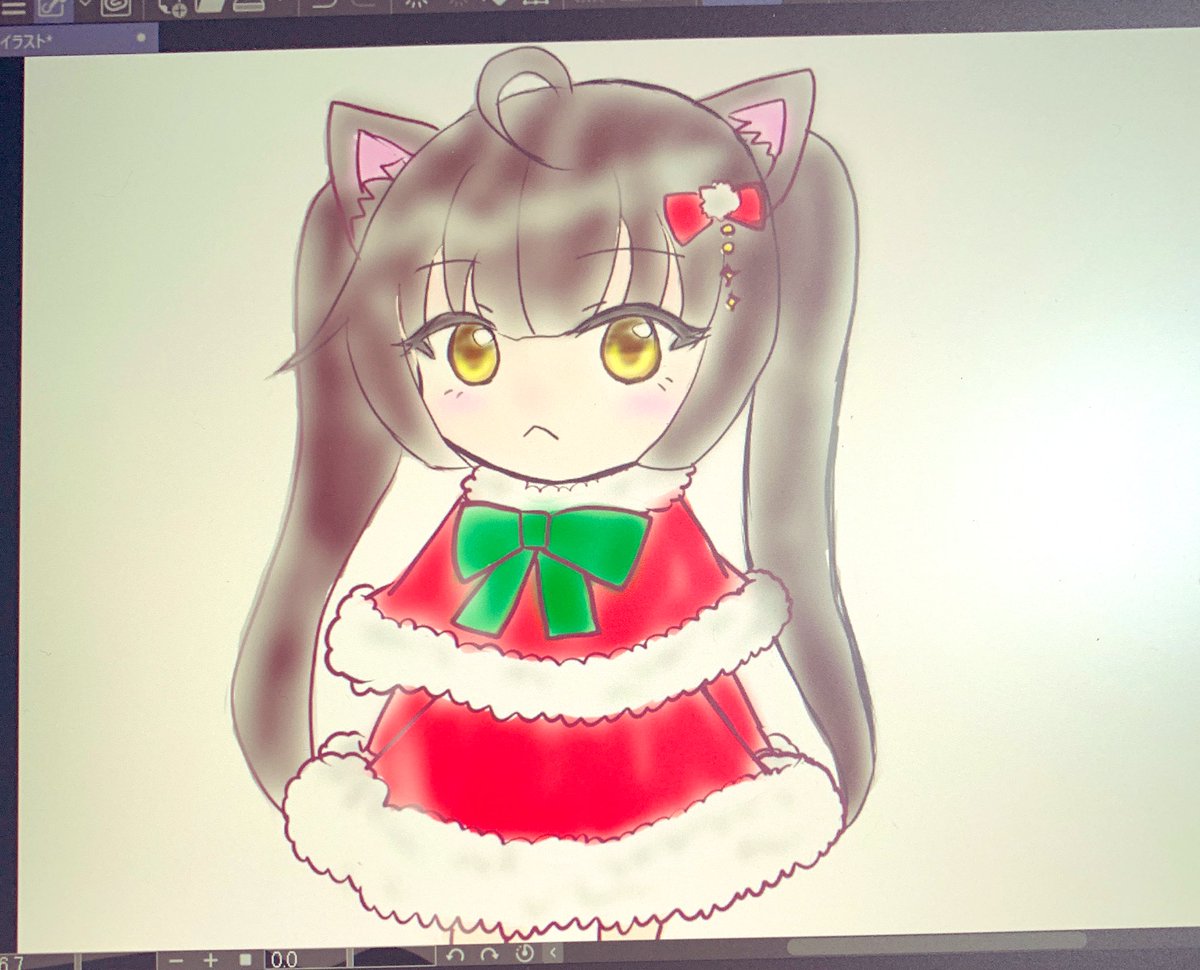 液タブ初描きしました!! 色塗りめんどくさくてエアブラシで適当に塗ってみた!! クリスマスイブです🎅🏼🎄🎂🍷🎁⛄️🎉たいよろ!!