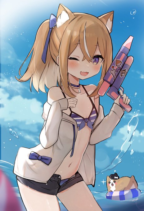 ご依頼で水着なちうちゃんを描かせて頂きました🐶 #ちぇすなーと