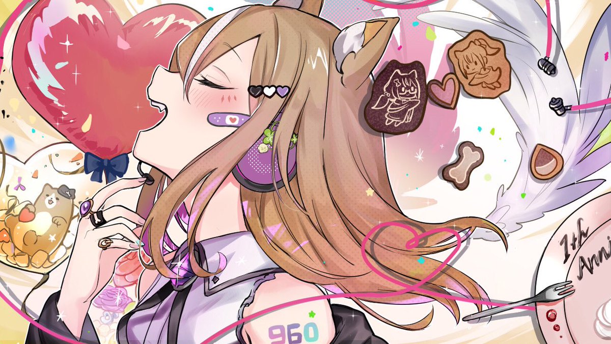 ちうちゃんの1周年記念の歌ってみたイラスト描かせて頂きました🦴🌰 楽しく活動してるちうちゃんを見るのが大好きです…1周年おめでとう!