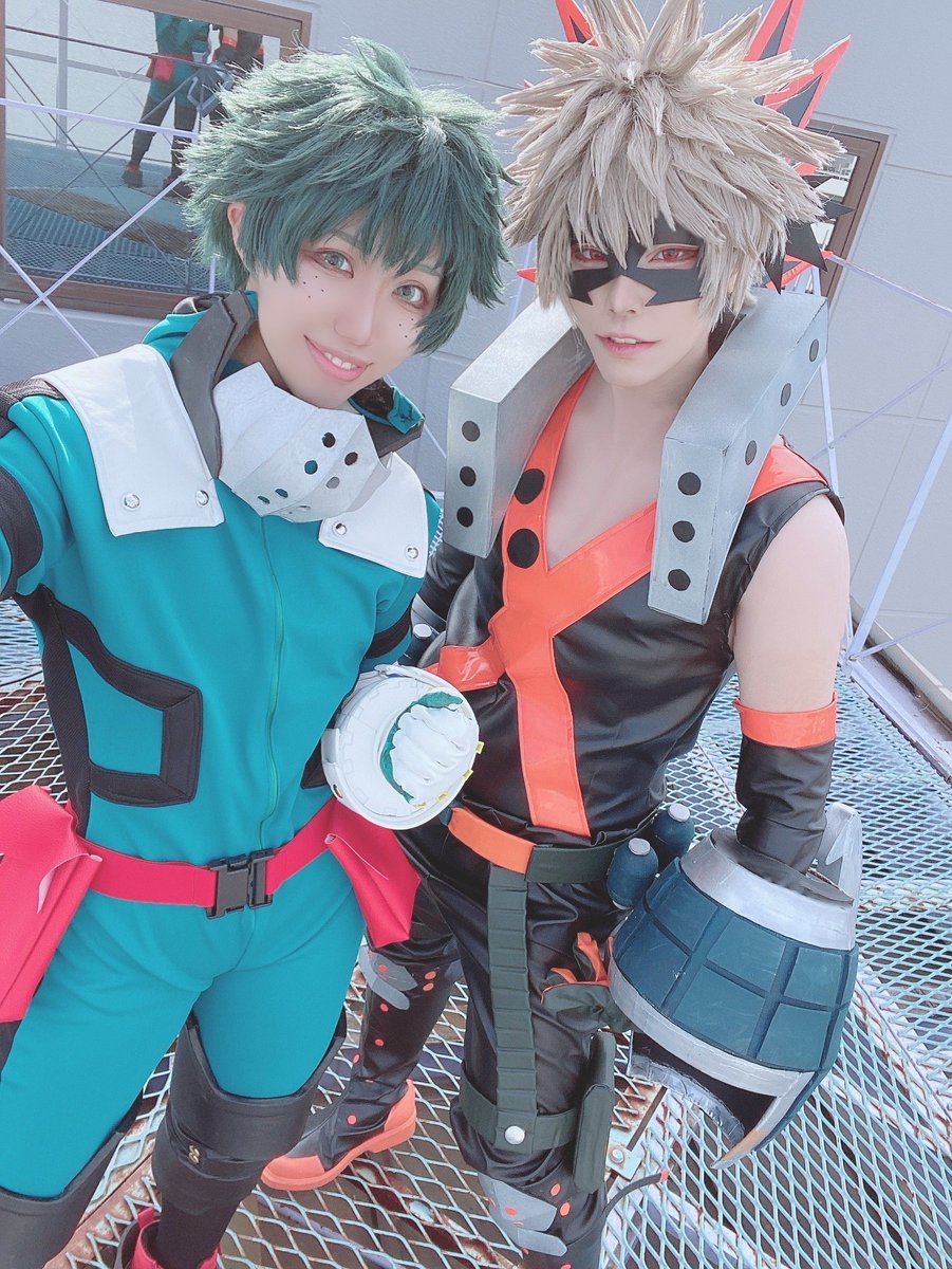 【コス】一緒にオフ会参加してくれた🥦くん!! えーちゃんさんのデクくん笑顔がかわいくてでもヒロスでポーズとったらかっこよくて最高だった😭💕 あと撮りたかったおさなな色のカラーボックスめっちゃかわいかった✨ #ハコアム大阪オフ会