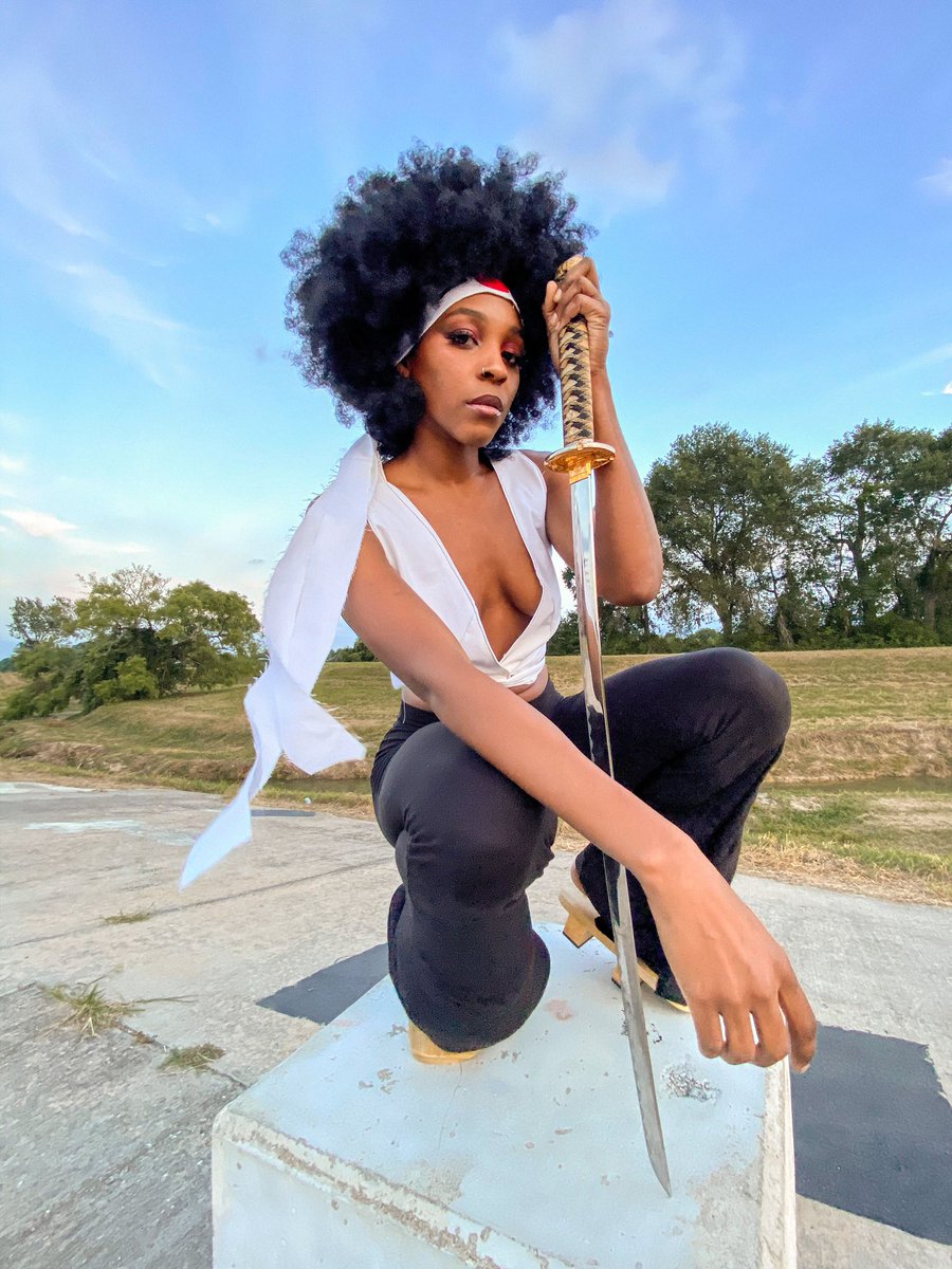 Didn’t wanna take the sword out but you forced my hand 🤷🏾♀️ #afrosamurai #anime #cosplay #blackcosplayerhere