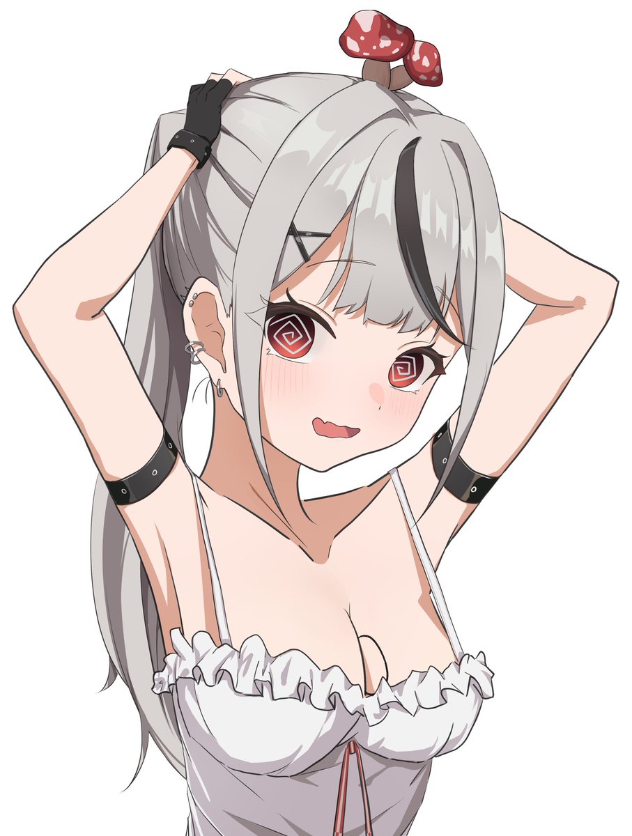 ポニテクロヱちゃんの髪結いをパシャリ!📸(1枚目) …………🍄ピョコッ。。。!?(2枚目) #さかまた飼育日記 #ホロライブ #沙花叉のきのこ