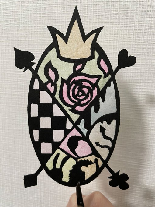 0 5 #twstファンアート ? #ツイステファンアート ? これを こうして こうです 和紙の色が薄かったぁ パウチして栞にしましょうかね 21/10/19 19:38
