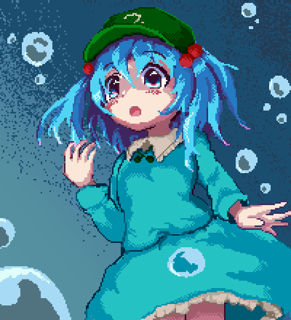 115 565 ドット絵で河城にとりを描きました! #pixelart #ドット絵 #東方Project #河城にとり #絵描きさんと繋がりたい 23/02/16 19:30