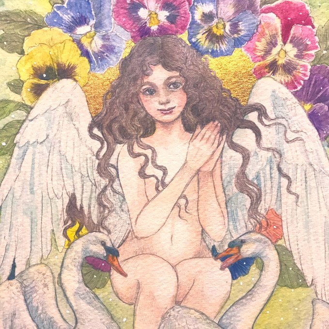 💠お知らせ💠 東京曳舟のgallery hydrangea(@AjisaiGallery )様にて『泡のように』展に出展しております。 新春なので楽しい事や嬉しい事で心が満たされますように、無邪気な女神様を描きました。お時間宜しければぜひご来廊くださいませ🦢 ギャラリー様展示詳細こちら↓ gallery-hydrangea.shopinfo.jp/posts/38314858