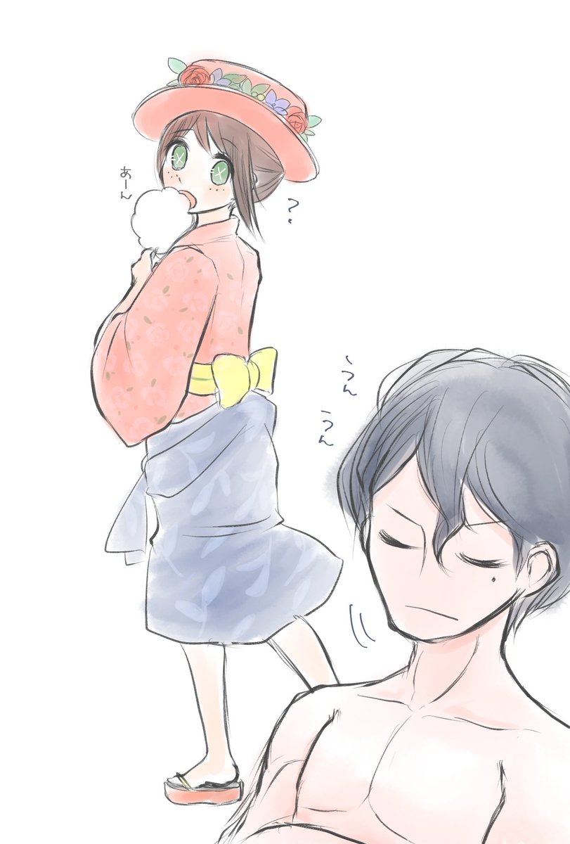 28 107 ナワエマ/傭庭 どうしようもないらくがき いやね、あの浴衣見た時ね、私の頭の中にいる過保護世界線のよへが自分の甚平を腰に巻き付けてたのでね、鉄は熱いうちに打てっていうしね(言い訳) 🤕「これで安全だ」 ⚓️「服着なさい」 20/07/08 02:18