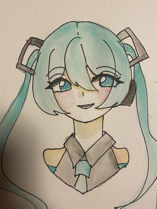 ミクちゃん描きました ┈┈┈┈┈┈┈┈┈┈ #初音ミク #アナログイラスト #イラスト #百均水彩