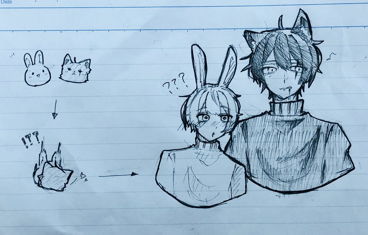 1 12 授業中描いたイラスト!!「3頭身カービィ」「6頭身ピカチュウ」「西 丈一郎」「兎くんと狼くん」授業中まじ歪むww #落書き #アナログイラスト #イラスト # 22/06/27 16:23