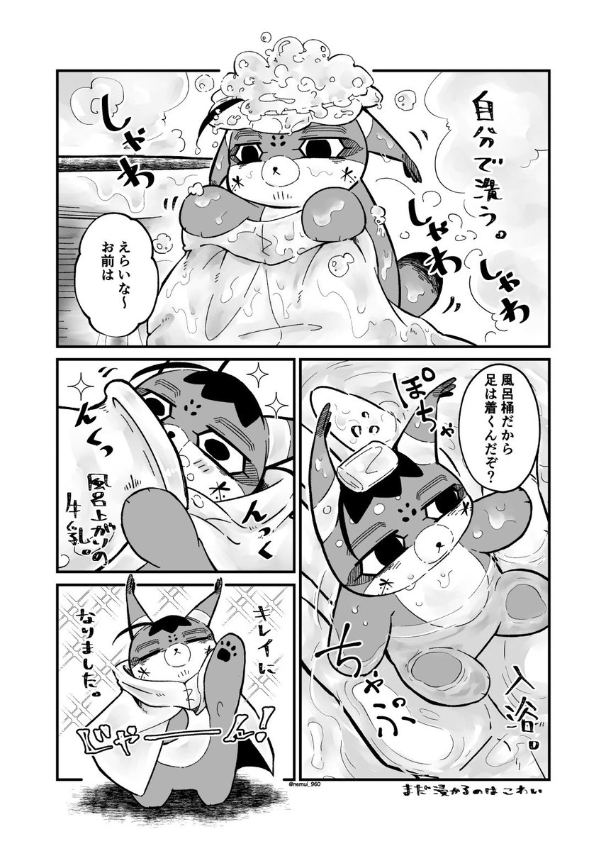 お風呂とフォゼ尾🐱 シャンプーハットとタオルはお手製です🛀