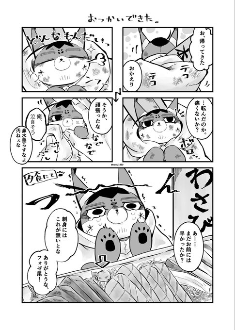 林檎とフォゼ尾🐱に4コマ付けました。 我慢が出来なかったご様子🍎