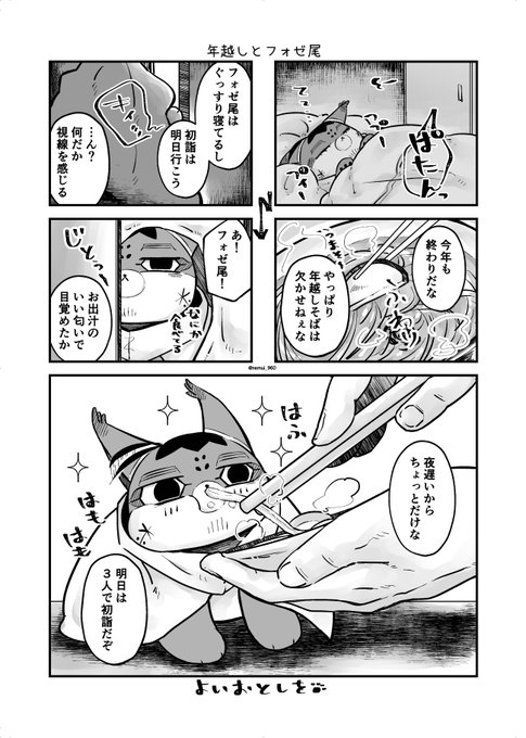 年越しとフォゼ尾🐱 フォゼ尾が家に来てくれてから、たくさん絵を描いたし私自身癒されてきました。来年もどうぞよろしくお願いします。少し早めですが、皆さん良いお年を🐱