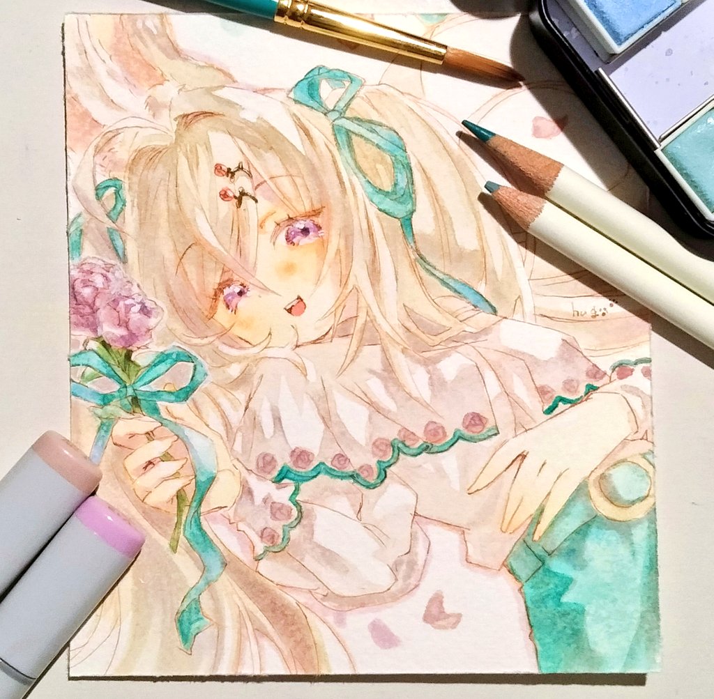 #フォロワー10000以下の一次創作作家発掘フェス 水彩とかコピックとかデジタルでもふもふフリフリふわふわな女の子をいっぱいお絵描きしてます😊💕 skeb等のご依頼はデジタルでお請け致してます〜! デジタルもアナログも楽しい!!