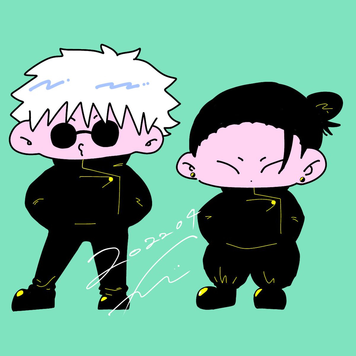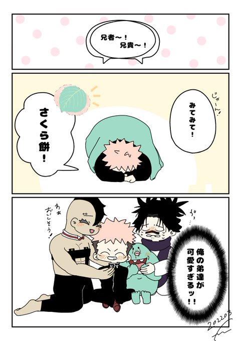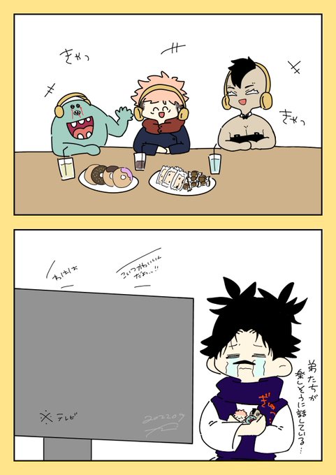 オーコメ最高でしたねの落書き。 脹相もきっと弟たちを見守っていたことでしょう。 ゲストのお二人も本当に和気藹々と話されていて、壊相と血塗と悠仁の仲良し兄弟を見ているようでとても癒されました。 #呪術廻戦ファンアート