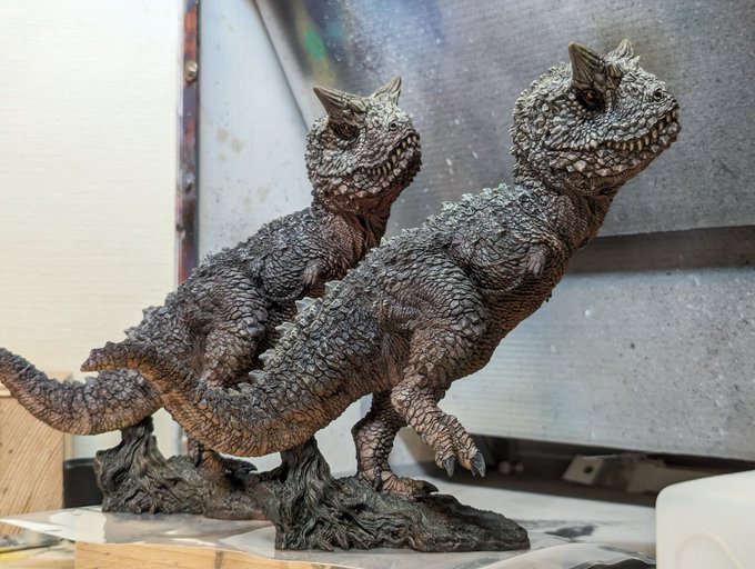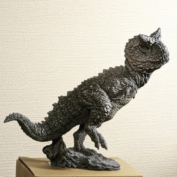 カルノタウルス完成しましたー! 夏のワンフェスで販売します!今回は片足上げたかったのでベース付きです!!詳細は後ほど #WF2023S