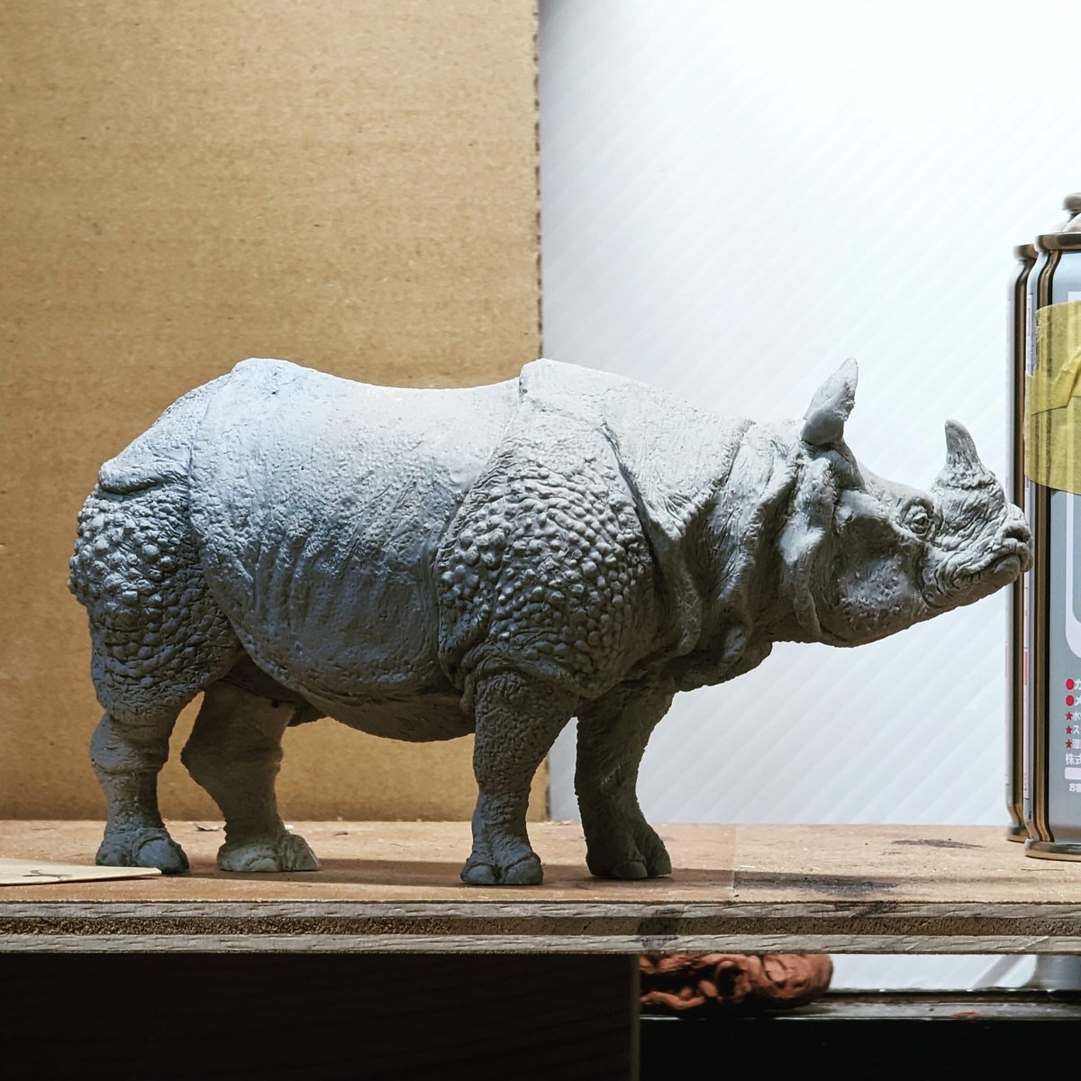 インドサイのレジン届きました!今回も塗りやすいようにグレーで複製してもらっています。スミ入れやドライブラシで楽しく塗っていただければ幸いです。グレーなので組むだけでも良いと思います〜 ・懐かしのインドサイ(全長約16cm)10000円 #wf2023w