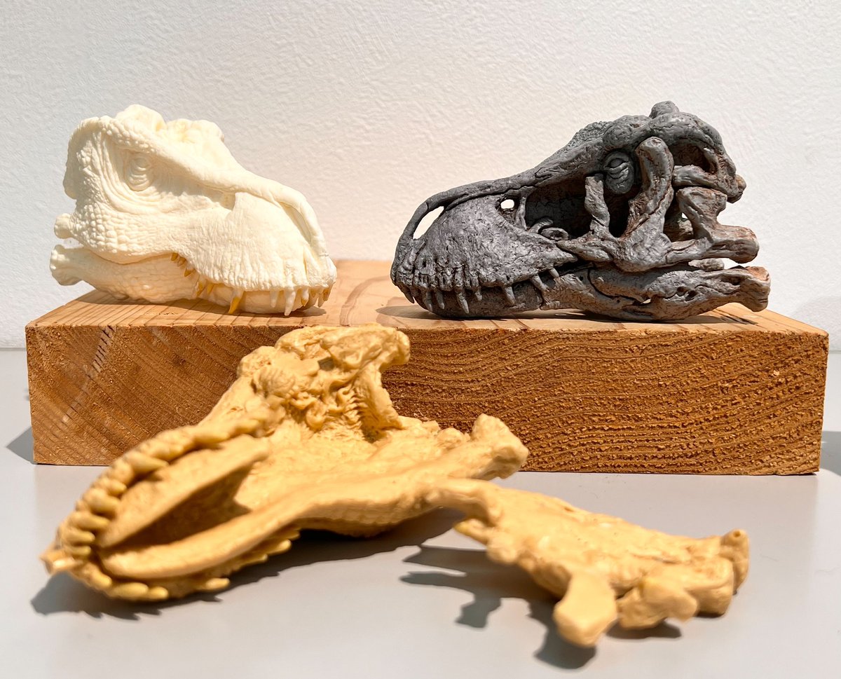 ティラノサウルの3Dスキャン縮小版です!3Dプリンター出力品で販売します。(3500円) 並べると親子っぽいです。パーツ構成は大きいガレージキットと同じになっています。 #wf2023w #ワンフェス #ティラノサウルス