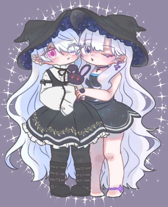 ぽすちゃんのハロウィンの描き合い企画に参加させていただきました…!(なんとありがたい…) うさ魔女ぽすちゃんと、オオカミおばけのなっちゃん描いたよ🧙♀️🐺 楽しく描けたありがとう~~!!! #メイプル描き合い #ハロウィンイラスト2021 #衣装オリジナルデザイン #メイプルストーリー #慧涙あーと