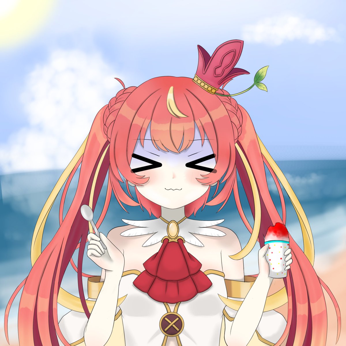 #めいの庭 #芽唯画 夏休みの自由研究提出しました~(*^^*) かき氷を食べてきーんとなってる芽唯ちゃんのお写真風なのです! みんなすごかったのです!