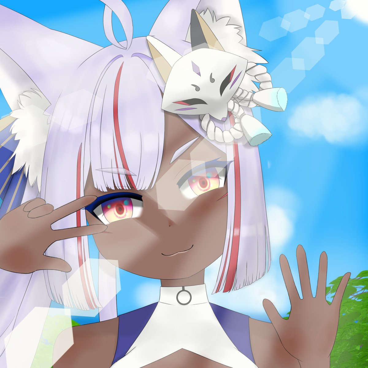 #こんこん絵巻 #雪尾紺 夏の思い出なの(*^^*) …黒ギャル差分描いてみました