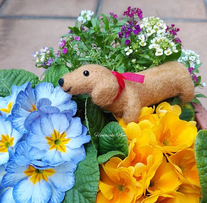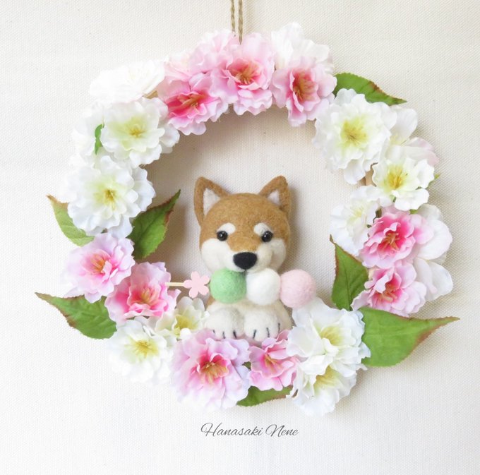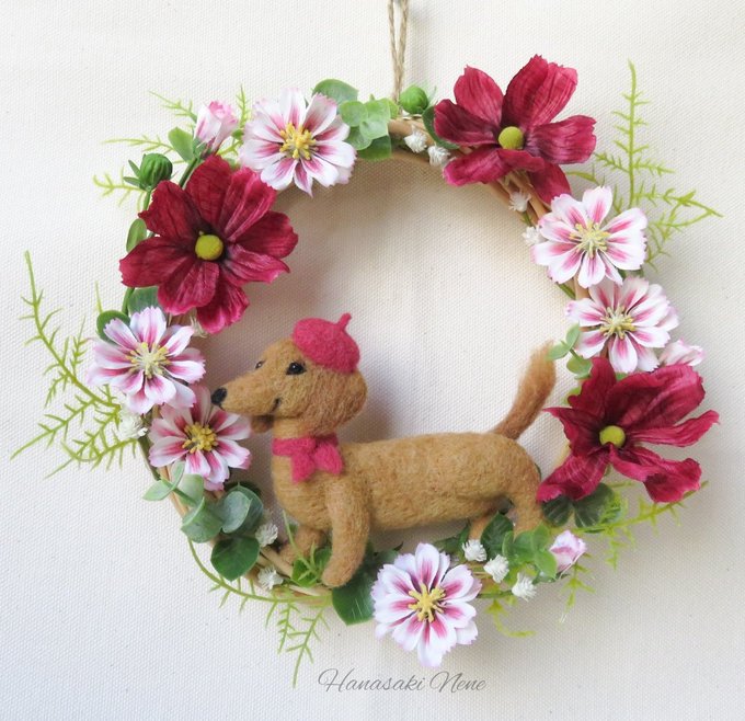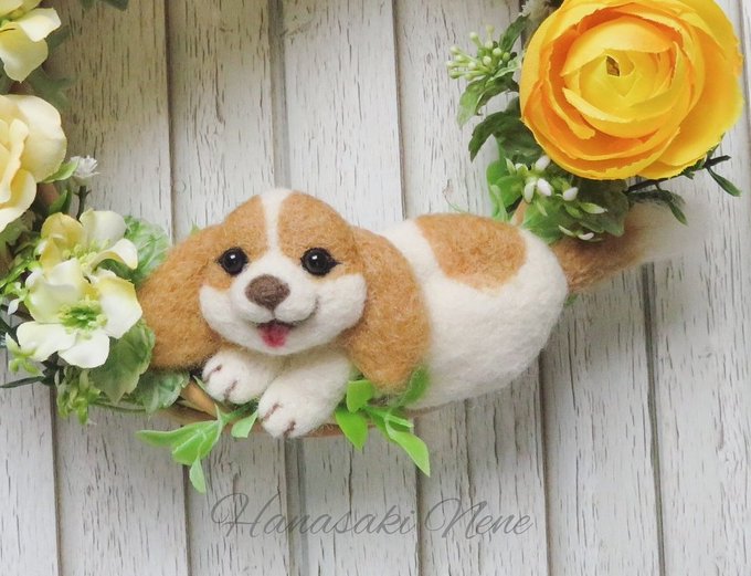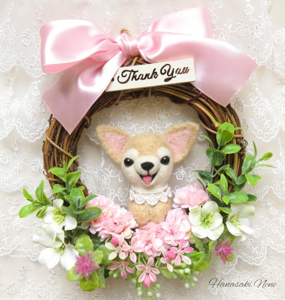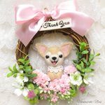 チワワのフラワーリースをminneに出品しました! Thank youのメッセージタグ付きなのでギフトにもぴったり。 ニッコリチワワちゃんがハッピーな気分にしてくれます♪ #minneの母の日 #羊毛フェルト #チワワ