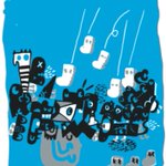 0 2 ミズタマリ ト カイジュウ #イラスト #木版画 #ネネカイジュウ 23/03/28 18:39