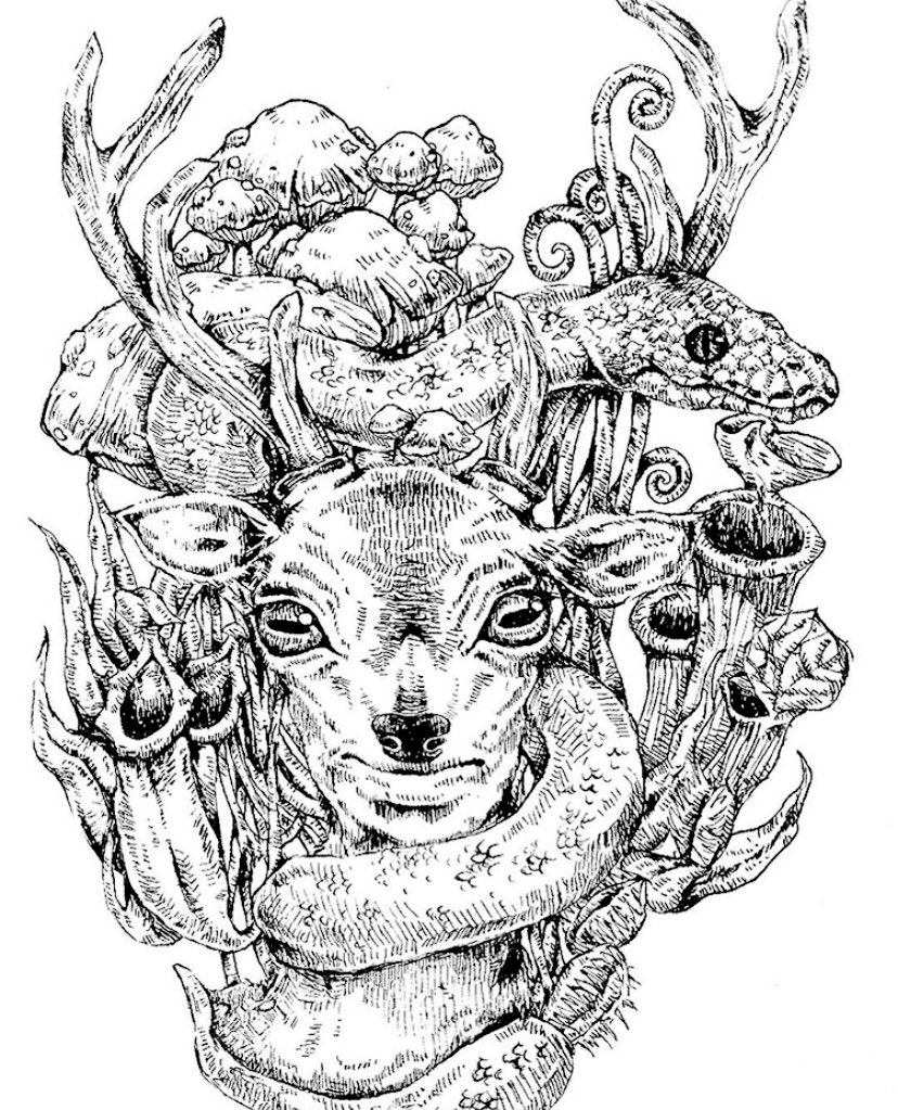 0 14 過去絵です。 #イラスト #ペン画 #爬虫類 20/11/15 19:07