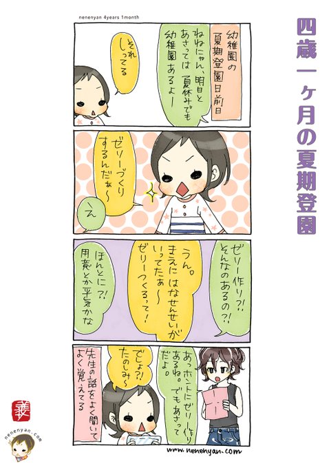 【548話】4歳1ヶ月の夏期登園 他の4コマ漫画やブログ、実写動画は 🎬nenenyan.com 初期の話のまとめ読みはKindleの無料電子書籍で 📚amzn.to/3lpQNC8 全話まとめ読みはLINE漫画インディーズで 📗manga.line.me/indies/product… #スーパーねねにゃん #漫画が読めるハッシュタグ