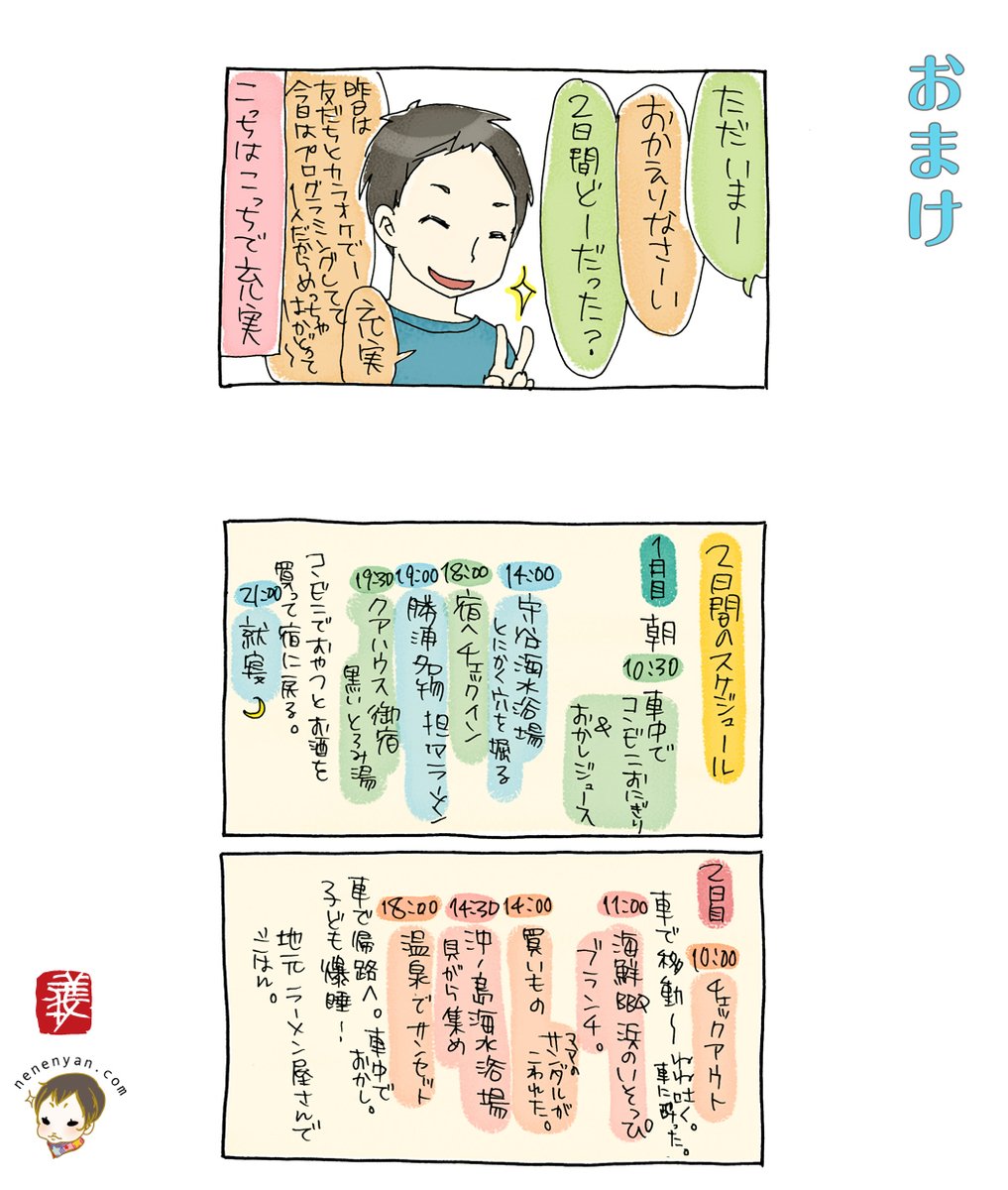 【563話】〜【566話】夏旅行後編 他の4コマ漫画やブログ、実写動画は 🎬 nenenyan.com 初期の話のまとめ読みはKindleの無料電子書籍で 📚 amzn.to/3lpQNC8 全話まとめ読みはLINE漫画インディーズで 📗 manga.line.me/indies/product… #スーパーねねにゃん #漫画がよめるハッシュタグ