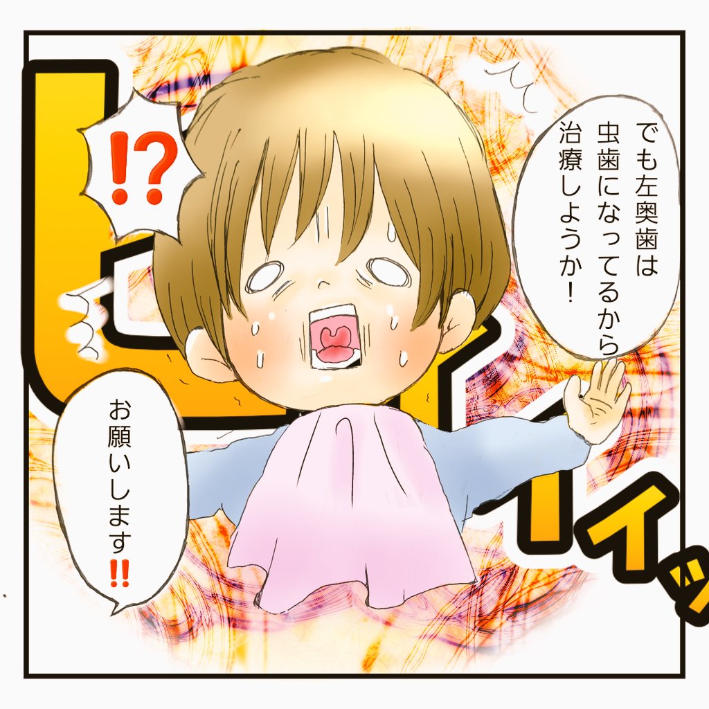 歯医者に行きました! 右奥歯は抜歯には至らず、ほっとしたのもつかの間、新しい虫歯が見つかりました‼️ 最近コロナで定期検診にも行ってなかったし、もう大きいからと仕上げ磨きもしていなかった。母、反省です。 #育児漫画 #漫画が読めるハッシュタグ #虫歯