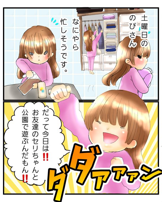 のぴちゃん初めてのお約束② 持ち物の次は身じたくです。 あまりの気合いの入れように 「え?お友達ってまさか男の子⁉️」 母もやもやしました。笑 でも安心してください。女の子でした😁 #育児漫画 #漫画が読めるハッシュタグ #コミックエッセイ