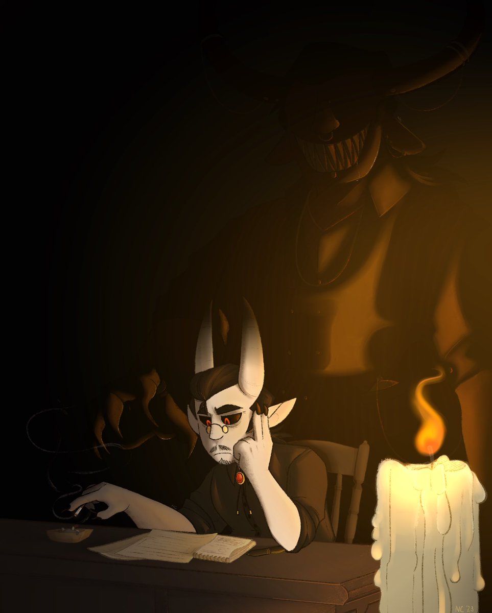 My warlock/rogue, Wayne White and his patron, Mammon the prince of greed for schoolwork! Drawtime ~9 hours and done on Procreate! - #dnd5e #dndart #DnDcharacter