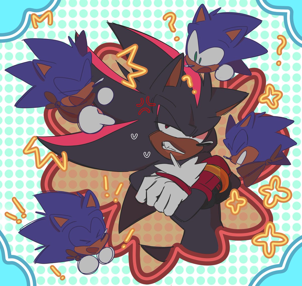 confession i really like shadow's beta design (aka terios) and looking at this specific picture, he kinda reminds me of a mime or a clown. i feel like he is a little jester