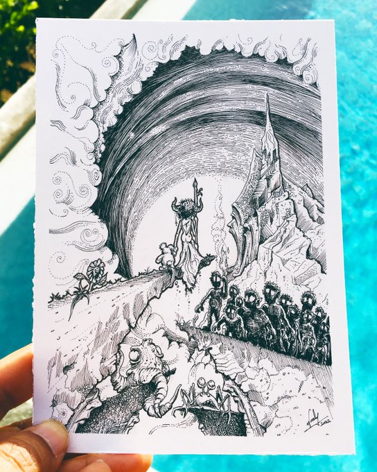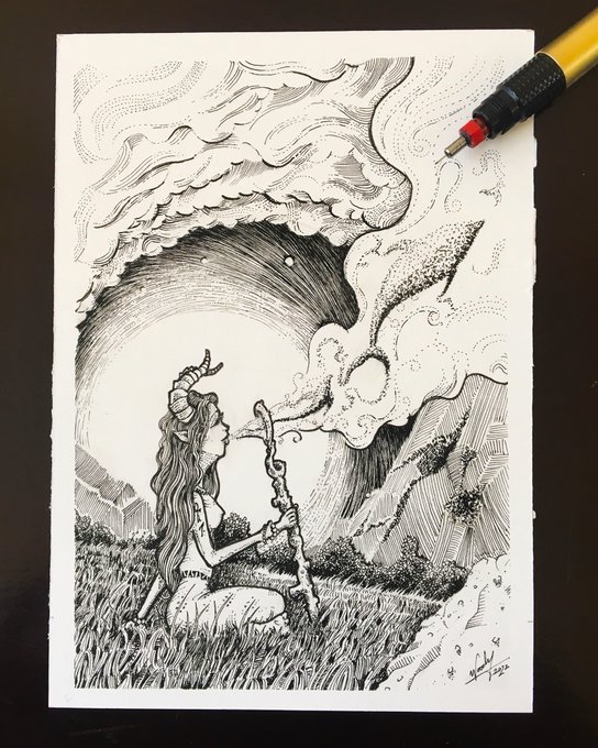 Done for today’s #Inktober prompt. 🖋 Amun’s Farewell 🎈 #Art #BlackWork #BlackWorkers #CharacterDesign #Creative #DarkFantasy #Illustration #Ink #InkArt #InkArtist #Inktober2020 #Lineart #Linework #OriginalArt #PenAndInk #PenDrawing #Staedtler #TraditionalArt