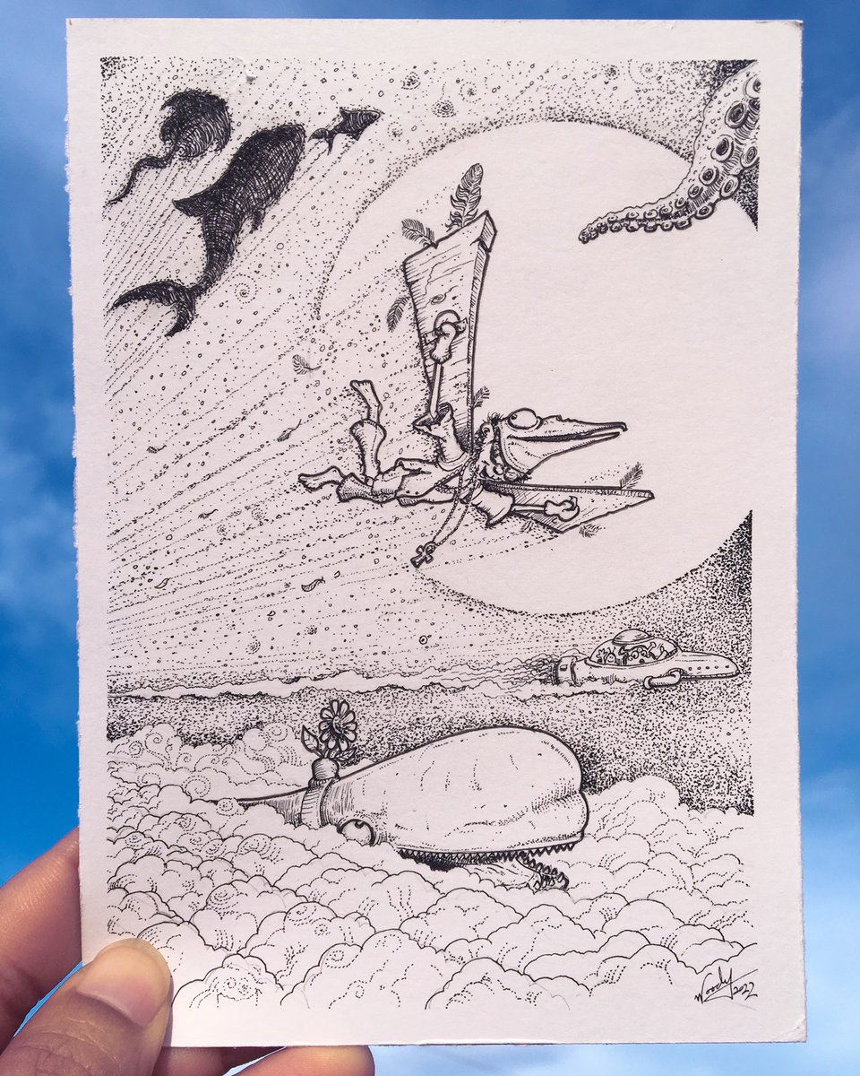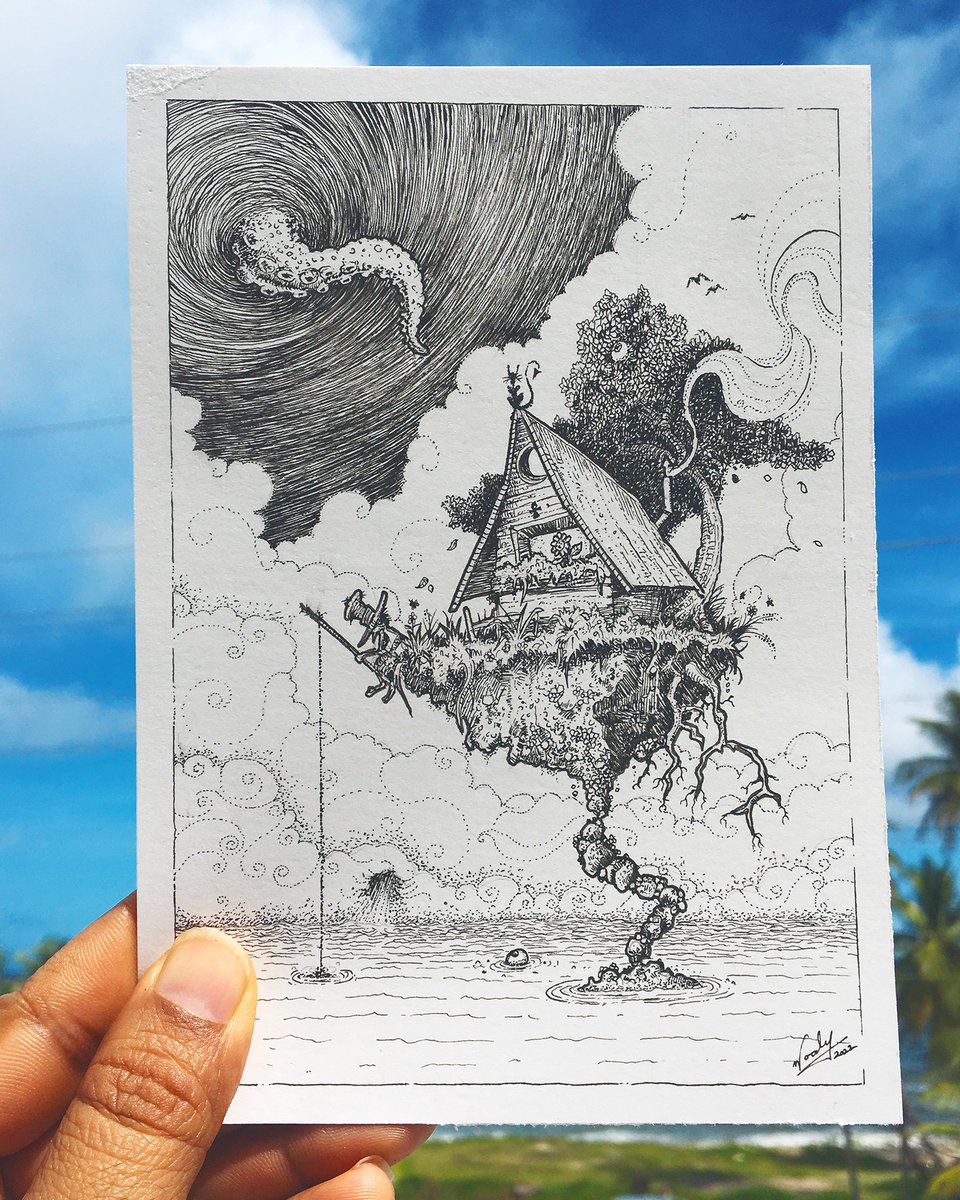 Amun's Farewell 5” x 7” Ink on Bristol, no AI #Inktober #Inktober2022 #Inktober52 #Tobago #TobagoArt #TrinidadArtist #TrinidadAndTobago