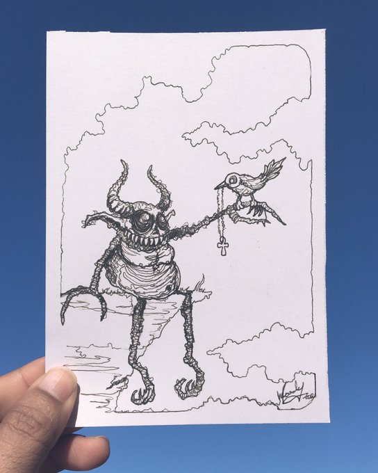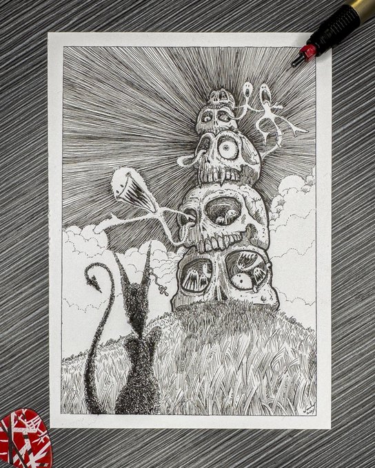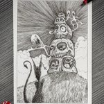 That Fallen feline making his appearance again. Working titles: 1) No human creature is immortal, Lucy-Fur. 2) Lucy-Fur and the Prophesy of Malachi 3) "Stay away from the tainted 'shrooms, Lucy-Fur!" Ink on Bristol 5” x 7” #Inktober #Inktober52 #Inktober52Skull #Staedtler