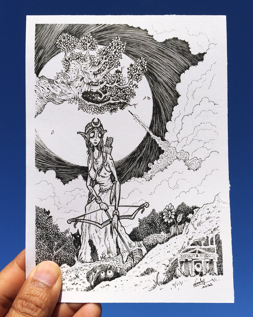 ‘Artemis’ One line at a time… 5” x 7” Ink on Bristol No DALL·E, no Midjourney #Inktober #Inktober52 #Inktober52Artemis #Artemis