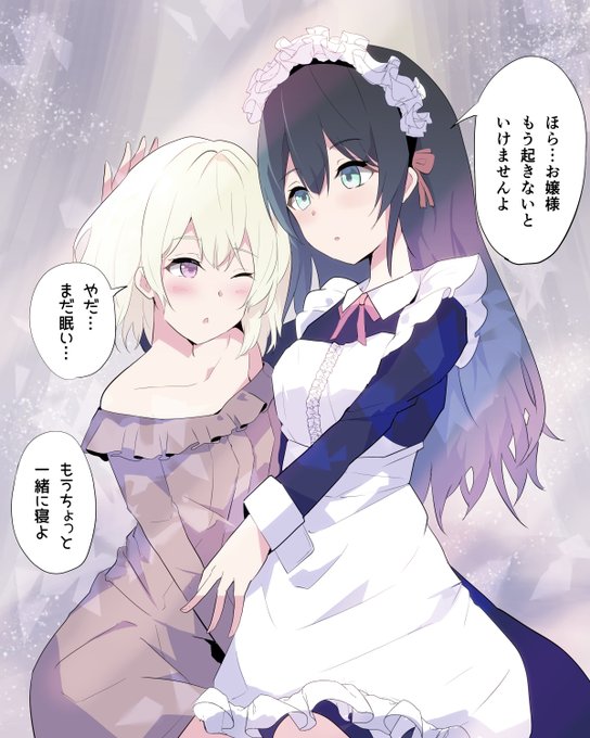 むにゃ… #百合 #創作百合 #イラスト #オリジナル #メイド
