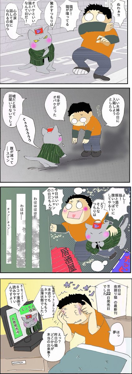 知らぬ間に 夜廻り猫関係のイベント予定が! さっそく zoomと8巻予約しました そして 8巻発売をお祝いして 漫画を描きました そうです 勝手に応援 ! 勝手に描いてます 発売日11月22日までは早いけど 今のうちにアップします! 下の画像切れて見れなかったらスミマセン #夜廻り猫 #ファンアート