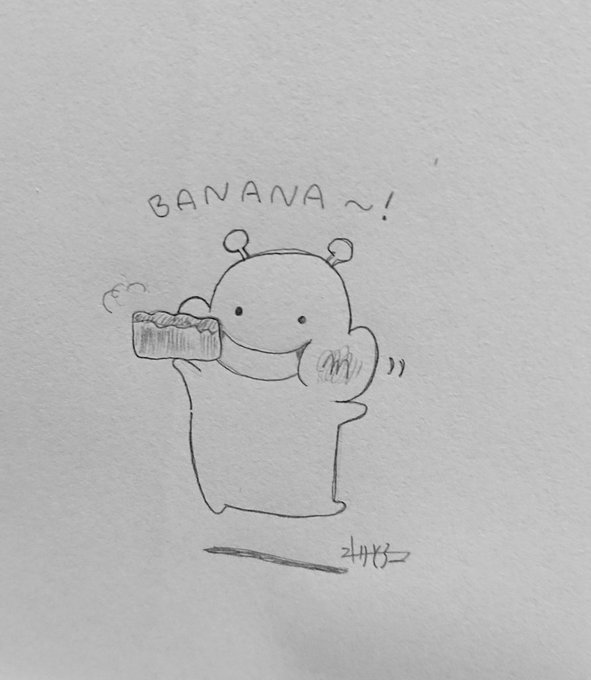 1 17 バナナケーキ🍌焼いたー ほっかほかで美味しい❤ #ほっぺちん #ゆるいイラスト #LINEスタンプ #イラスト好きさんと繋がりたい 21/08/10 22:19